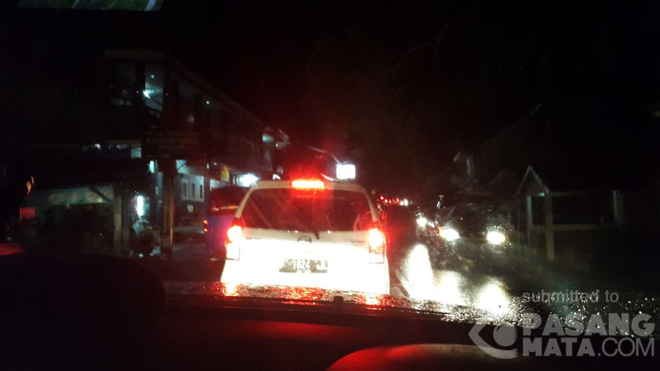 Padat merayap dari arah Cianjur menuju Cipanas Puncak.Cuaca hujan