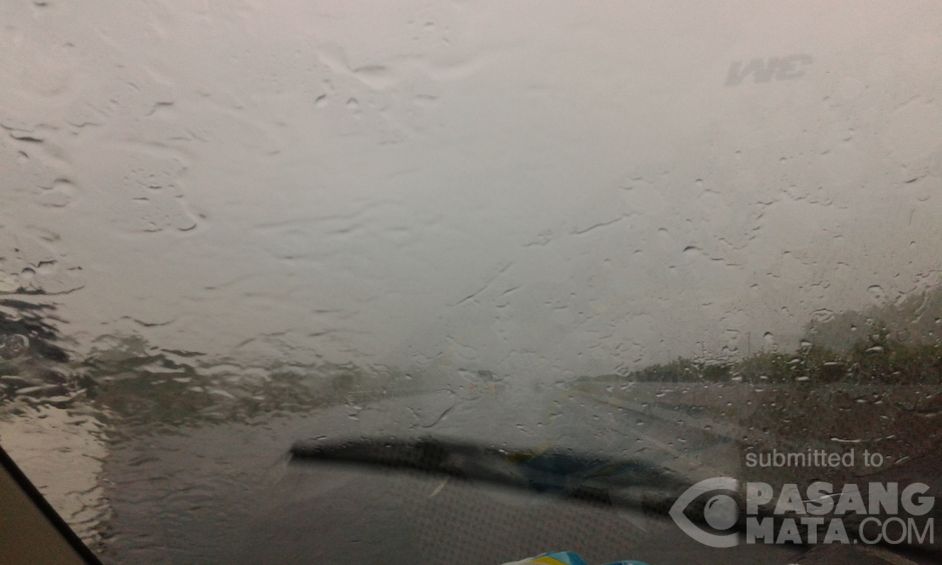Kawasan Tol Merak Jakarta KM 33 hujan deras