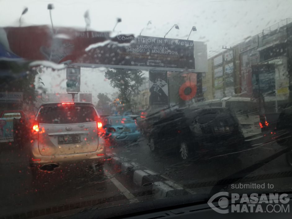 Hujan dan Mecet di Jl Gatot Subroto Depan Plaza Medan Fair