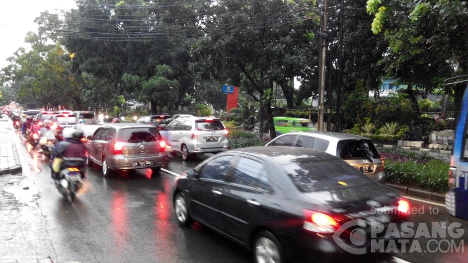 17.10 WIB Lalin Pajajaran arah Warung Jambu dan Cibinong, Kota Bogor, padat dan mengular panjang.