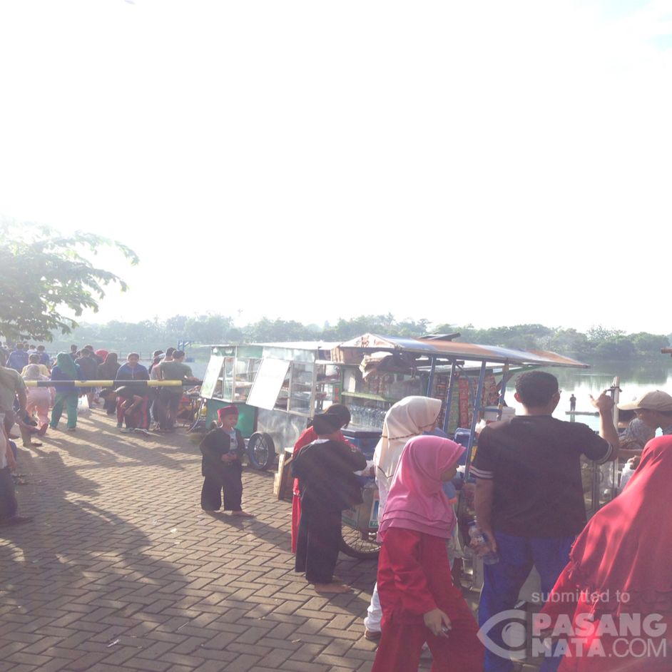 Suasana di pintu air situ gintung cirendeu...ramai dengan masyarakat yang lari pagi dan para pedagang