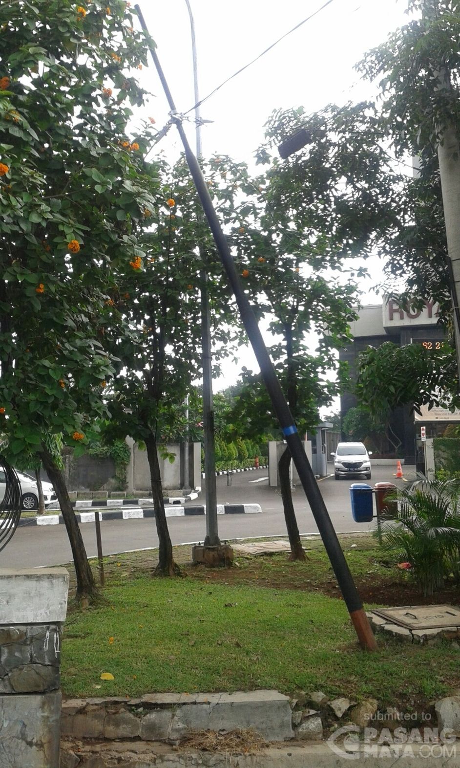 Ada tiang listrik miring di depan royal kuningan hotel, rasuna said. waspada pejalan kaki (4/1)