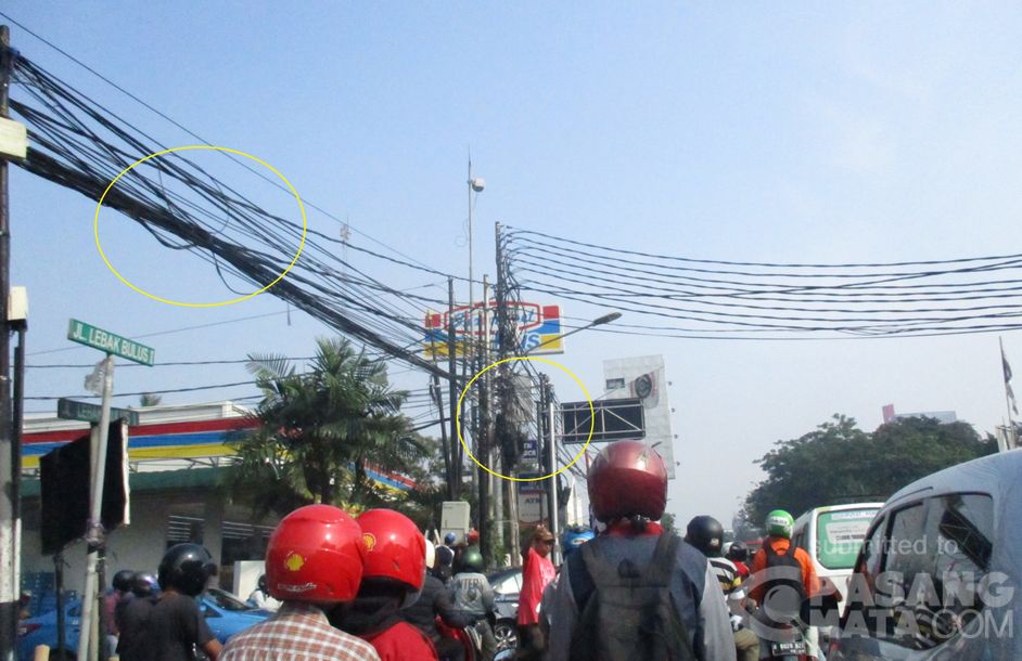 Semrawutnya ikatan kabel listrik di ujung jalan Lebak Bulus 1 ini.