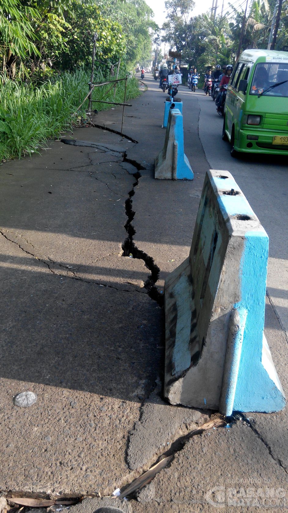 07.29 WIB Makin lama retakan jalan di Cilebut Raya, Bogor makin menghawatirkan. Bila malam tanpa penerangan dan tidak ada peringatan sebelum lokasi.