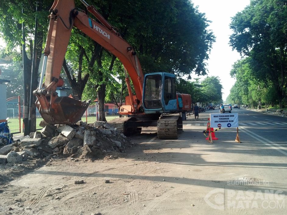 Hati-hati ada perbaikan jalan di Jalan Perak Timur Surabaya