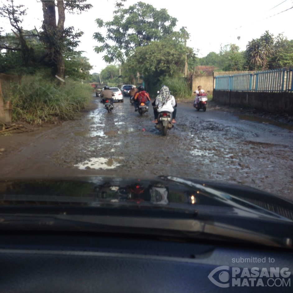 Jl akses parung - bsd tepatnya di rawa kalong rusak parah