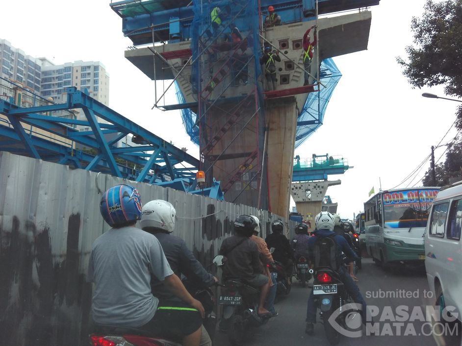 Hati-hati melintasi jalan Cipulir, ada pemasangan alat di proyek flyover Tendean-Ciledug.