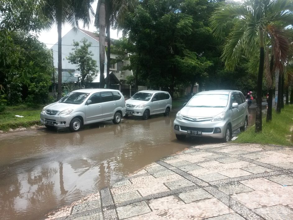 Kamis, 21 Januari 2016. Walau hujan hanya 10 menit, kawasan ini sudah tergenang banjir. Drainase yang buruk. Lokasi Jalan Hertasning Rappocini, Makassar, Sulawesi Selatan