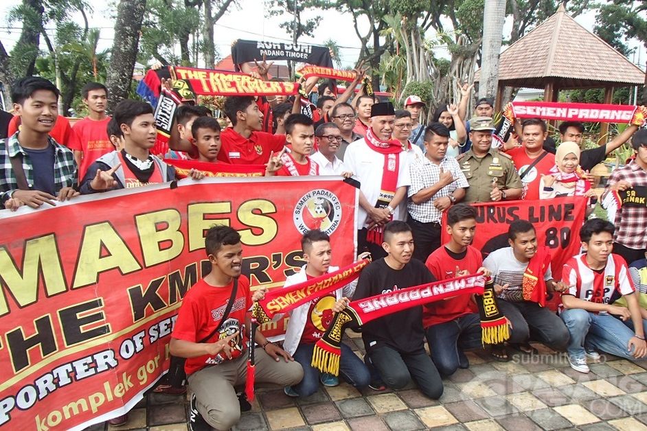 Walikota Padang, lepas Ratusan Suporter The Kmers dan Spartack untuk mendukung tim kesayangan mereka Ps.Semen Padang, di Gelora Bungkarno, pada pertandingan babak Final, Piala Sudirman nantinya. kamis (21/1/2016)