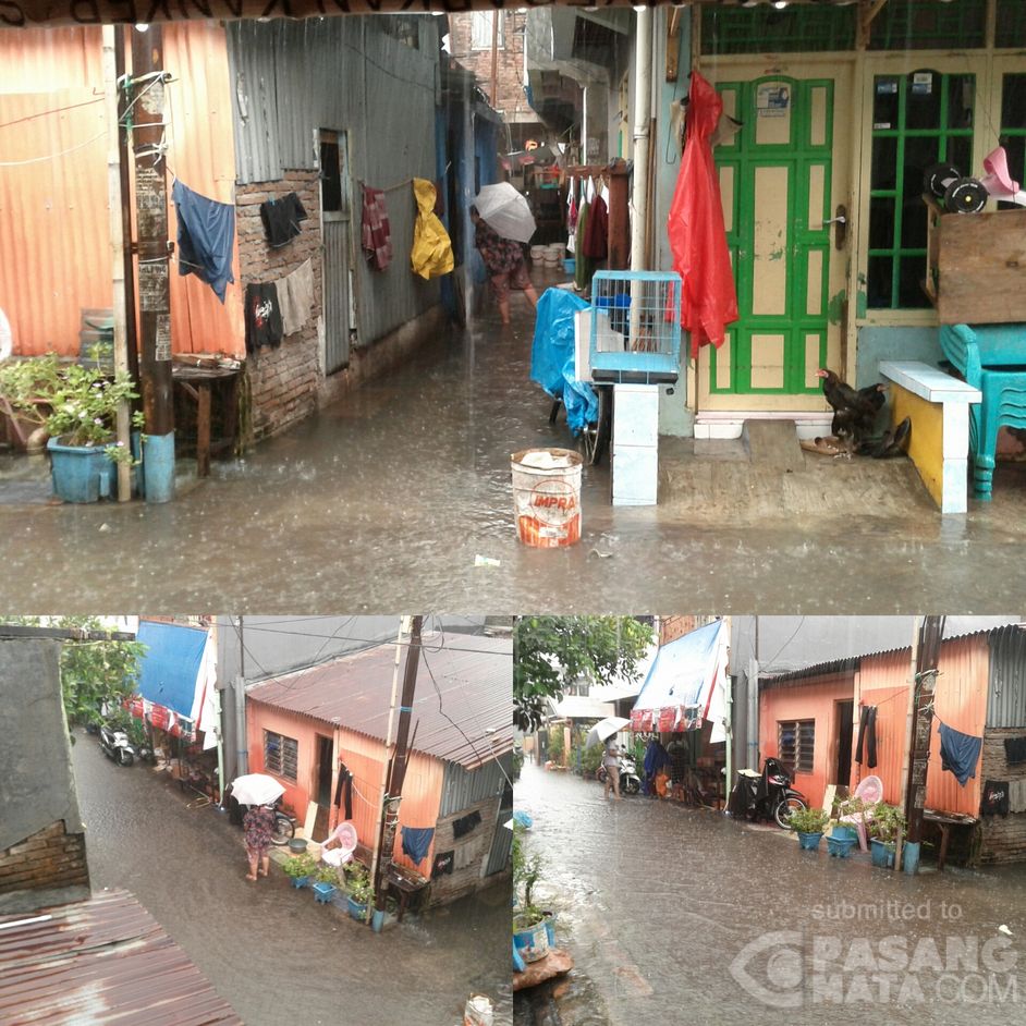 Jumat, 22 Januari 2016. Banjir terjadi di beberapa titik jalan kota Makassar, seperti di jalan Salemo Baru