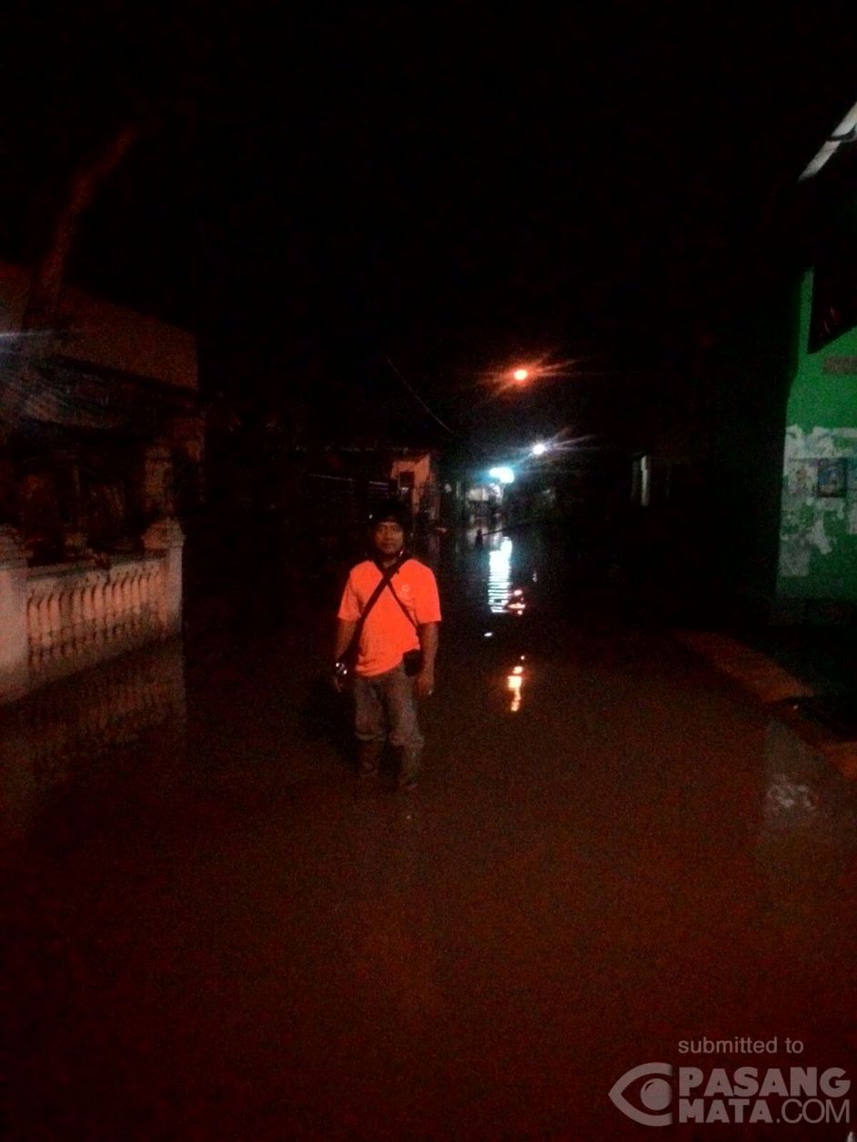 Sampai malam ini dusun Kuti desa Meri, Kota Mojokerto jalannya masih tergenang air stinggi kurang lebih 30 cm.