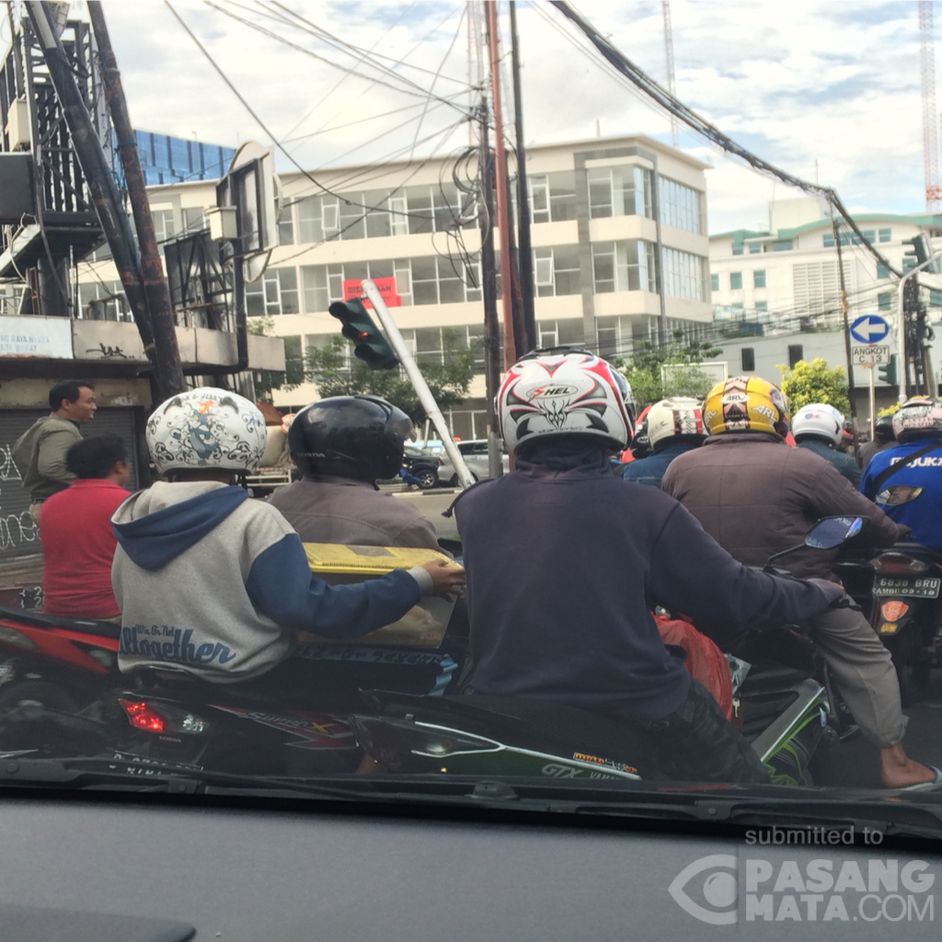 Waduh lampu lalu lintas di jalan raya kebon jeruk sudah miring