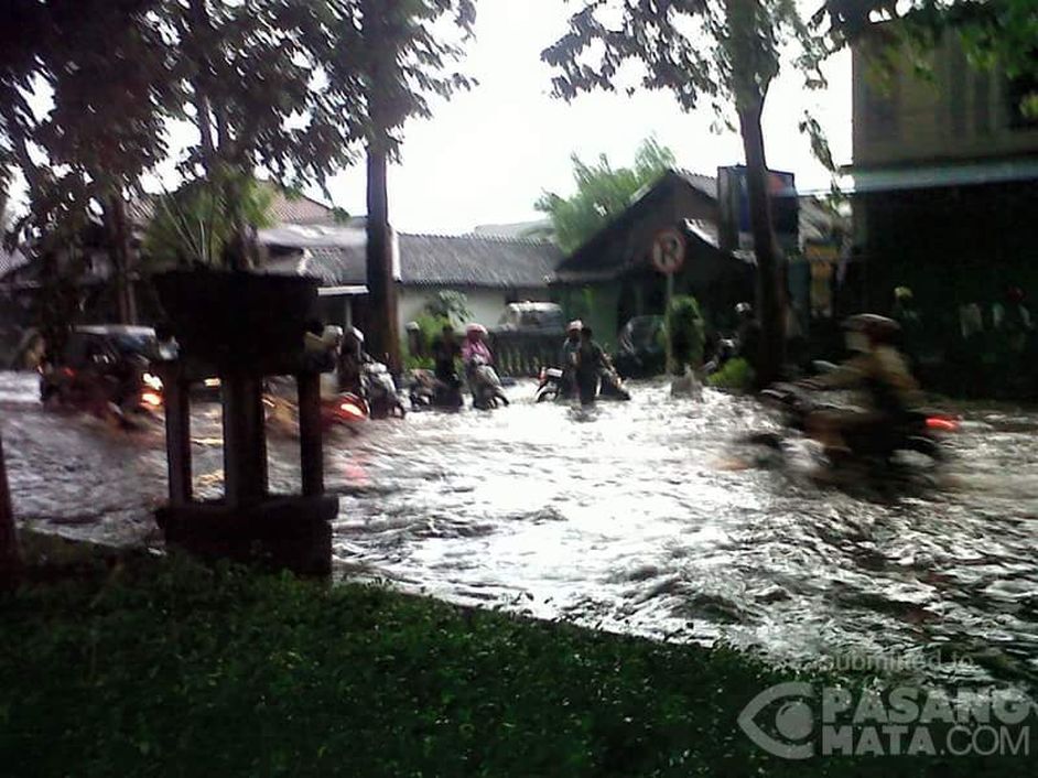 jalur mojosari-pungging mojokerto saat ini tergenang air kurang lebih 39 cm arus lalin merambat waspada pengguna jalan roda 2 hati- hati