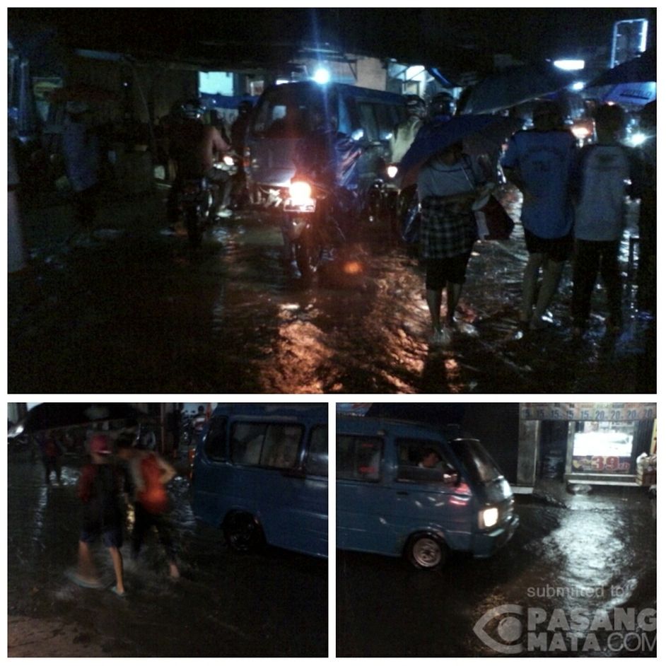 Jumat, 29 Januari 2016. Imbas hujan yang cukup deras, Tampak, Jl. Raya sekitar stasiun Cityam saat ini tergenang banjir.