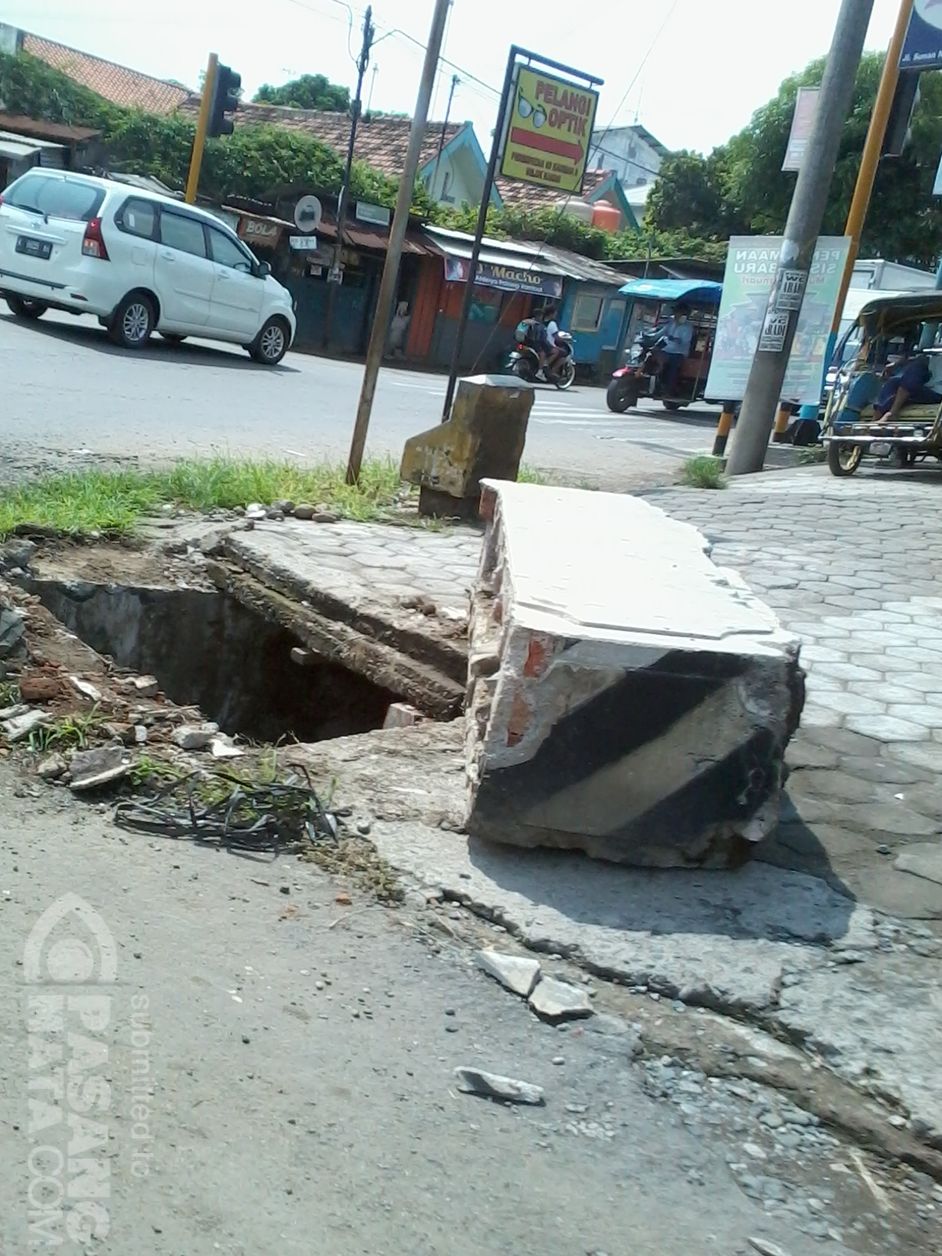 Awas hati hati berjalan di perempatan Jl Sunan Ngerang Juwana ada selokan yang dibiarkan terbuka