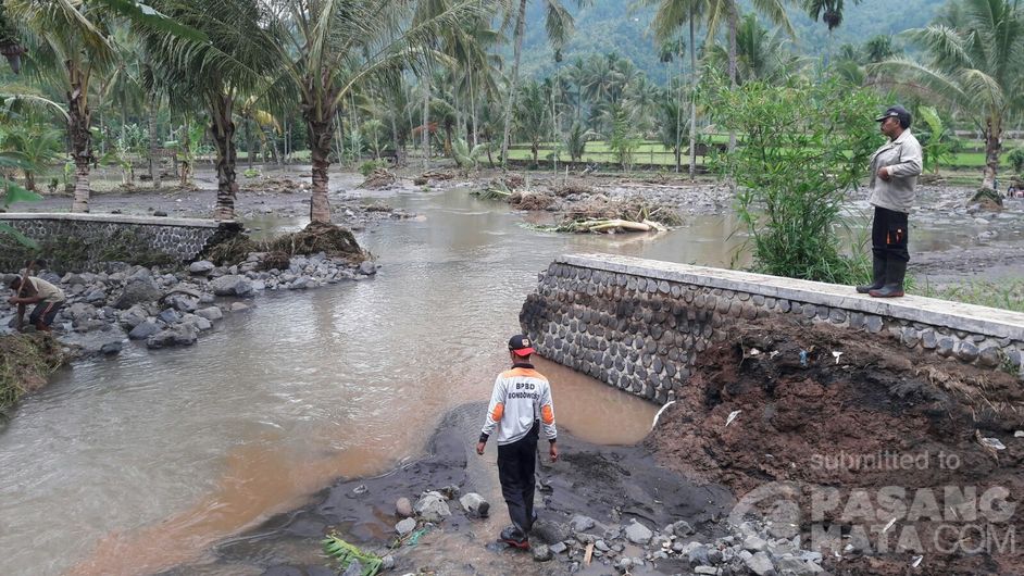 Senin, 1 Februari 2016. Penampakan tanggul sungai Silowogo di kecamatan Bungatan, Situbondo yang jebol akibat banjir bandang minggu dini hari tadi