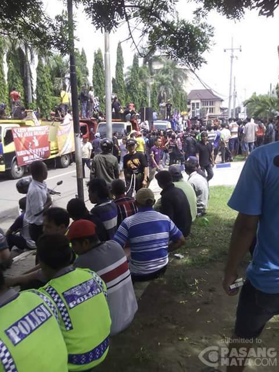 Senin, 1 Februari 2016. Ratusan penambang pasir seluruh Ponorogo ujuk rasa di depan gedung DPRD Ponorogo, Jawa Timur. mengakibatkan jalan alun-alun timur macet total