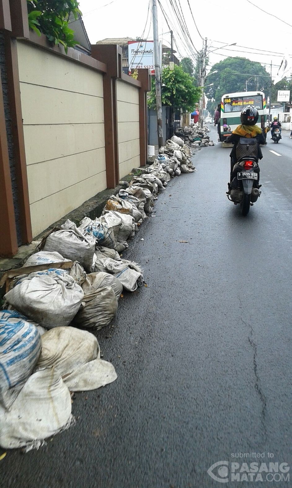 bekas sisa material galian tanah masih berserakan dipinggir jalan raya Benda Jeruk Purut. sangat mengganggu pengguna jalan.