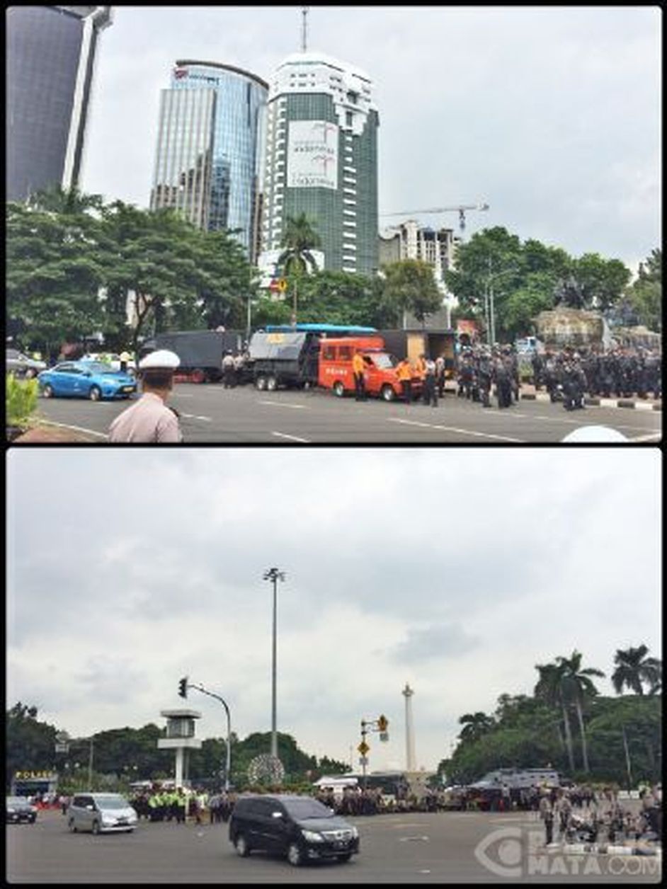 Tampak suasana hari ke-2, aksi demo para guru di sekitar Patung Kuda Monas, Jl Merdeka, yang dalam penjagaan ketat aparat keamanan. [Reza Farzky]