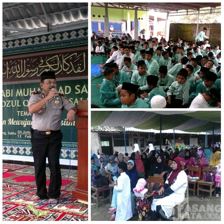Sabtu, 13 Februari 2016. Tampak hadir Kapolsek Parung, pada peringatan Maulid di Ponpes Riyadul Jannah Parung, Bogor, Jawa Barat. Dalam sambutan dan himbauannya beliau menyampaikan kewaspadaan bersama terkait beberapa aliran dan faham yang menyesatkan.