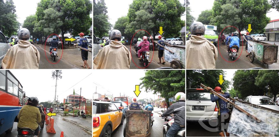 Perhatikan foto searah jarum jam, ternyata pemulung yang membawa gerobak lebih punya rasa malu dan berdisiplin tinggi, dibandingkan dengan para pemotor yang tidak tahu rasa malu dan berdisiplin rendah. Padahal sacara nalar, tingkat pendidikan pemotor jauh lebih tinggi ketimbang pemulung. SAlut dan Patut dicontoh, malu berkendara motor diatas trotoar. @170216