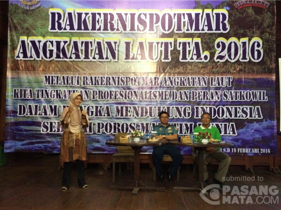 Jumat, 19 Februari 2016. Kementerian Kelautan dan Perikanan memberikan pemaparan terkait peran dan fungsi mangrove serta pemberdayaan masyarakat pesisir di Rakernas Potmar AL di Taman Wisata Alam, Angke-Kapuk, Pantai Indah Kapuk Jakarta dengan tema " Kita Tingkatkan Profesionalisme dan Peran Satkorwil dalam Rangka Mendukung Indonesia Sebagai Poros Maritim"