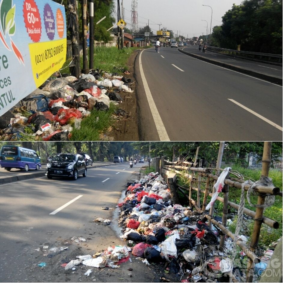 Jumat, 19 Februari 2016. Sampah di sisi kiri jalan raya Bogor arah Jakarta sekitar Cilodong, kian hari makin bertambah. Bahkan salah satunya sudah masuk badan jalan. Mohon perhatian Pemprov. Jawa Barat, agar sampah tersebut dibersihkan.