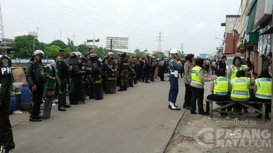 Suasana penjagaan oleh pihak aparat gabungan di kawasan Kalijodo siang ini