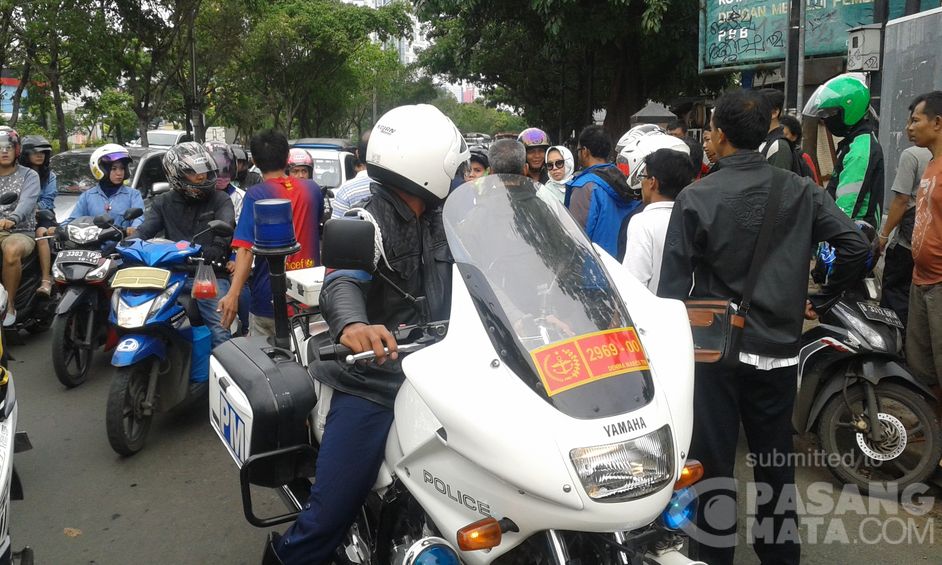 Anggota TNI turun tangan atas keributan antar pemotor dan pejalan kaki yang terjadi di Jl Pramuka arah Matraman 14.45 WIB