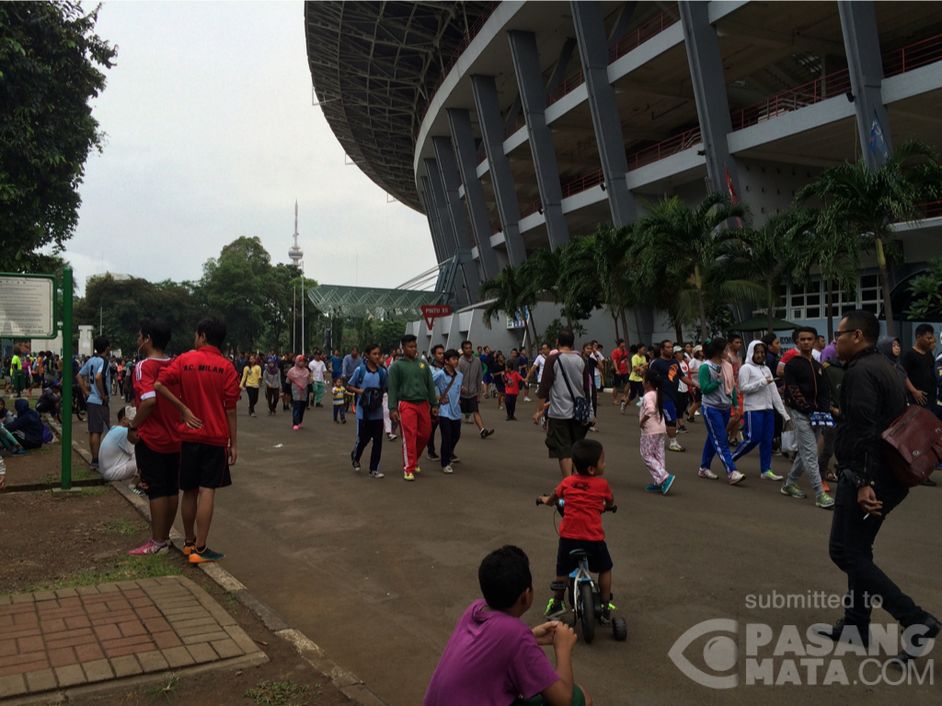 Ramainya pengunjung Gelora Bung Karno untuk jogging atau sekedar jalan santai di Minggu pagi (21/02).