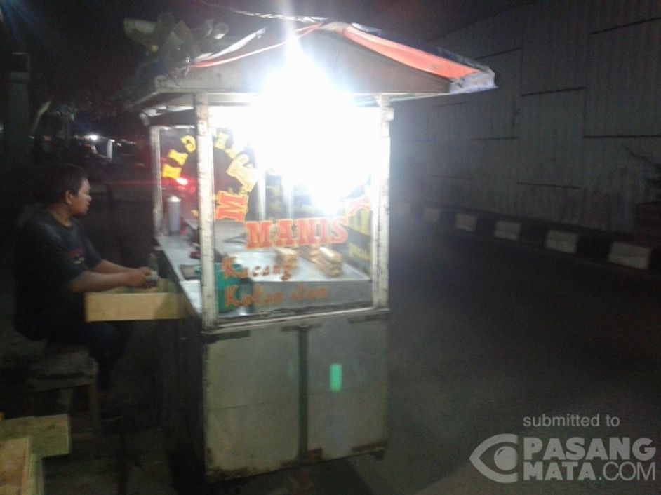 Pelanggannya pengendara melintas dan penumpang angkot. Tukang gorengan ini berjualan menggunakan badan jalan di Pasar Modern Simpang Tiga Baleraja