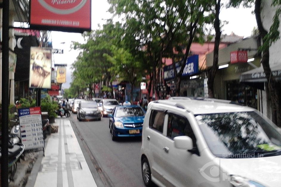 Lalu lintas jl Legian Kuta Bali tampak padat.