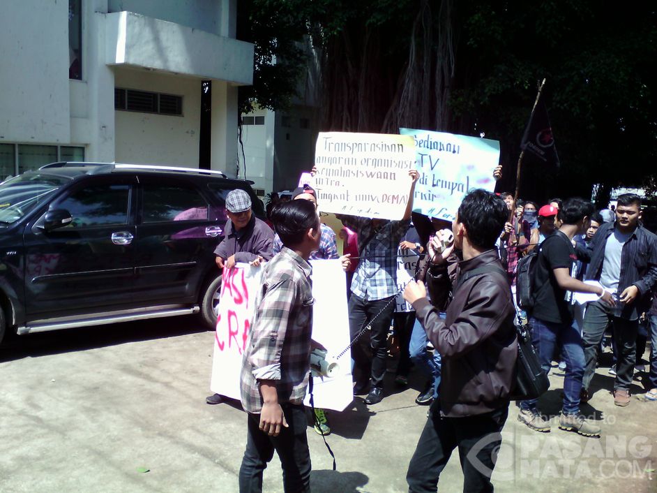 Sejumlah mahasiswa UIN Bandung unjuk rasa menuntut transparansi dana kampus.