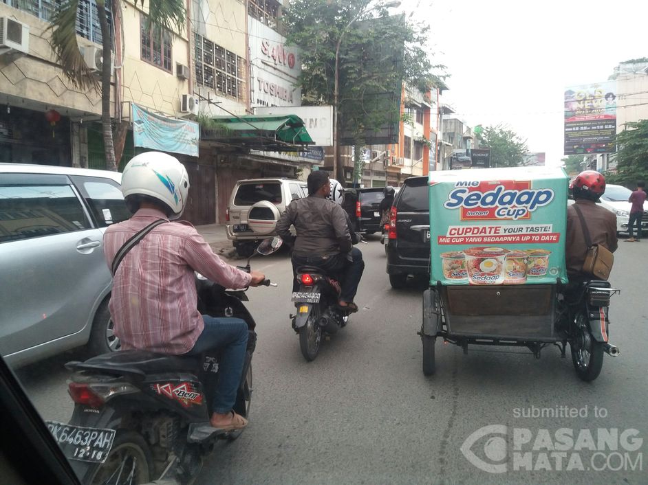 Lalin di jl Asia arah jl Sutomo terpantau padat merayap.