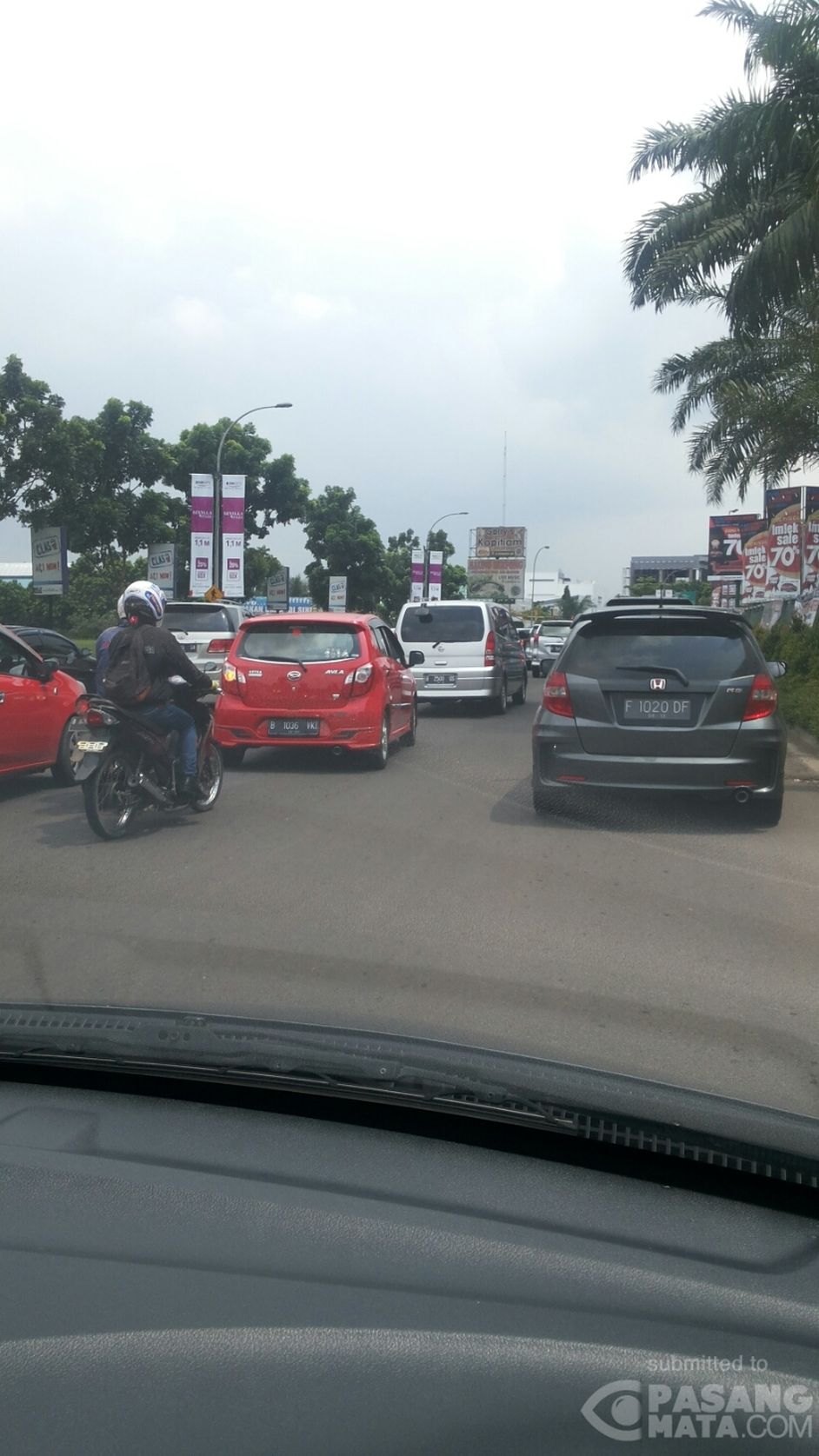 Lalu lintas di putaran BSD Junction Serpong padat kendaraan .