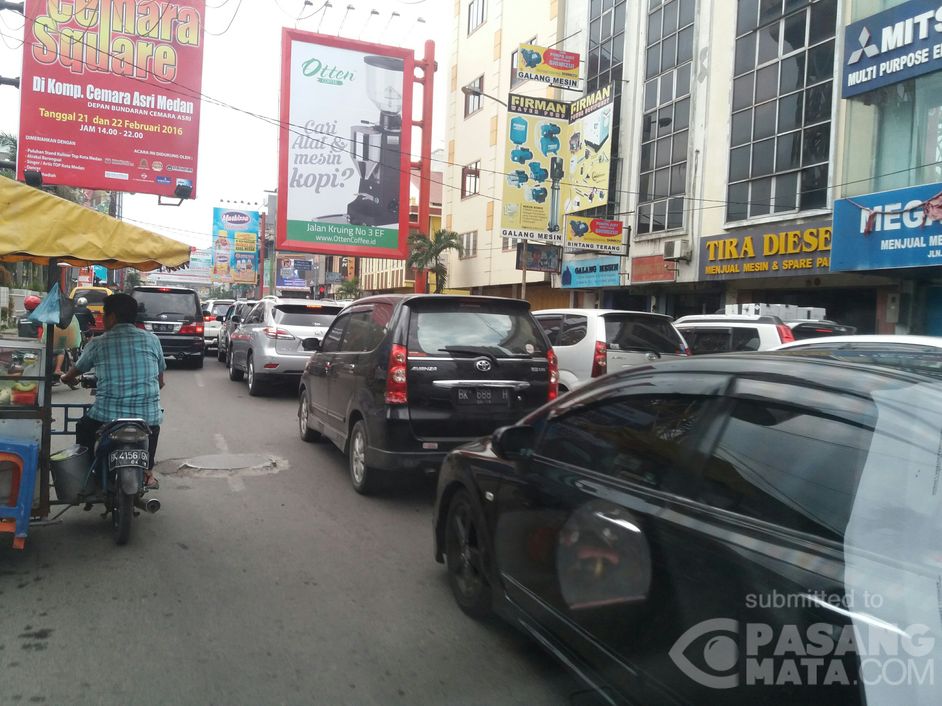 Lalin di jl Pandu Simpang jl Sisingamangaraja terpantau padat dan macet.