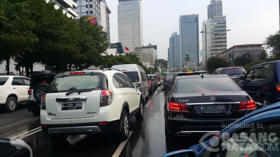Selasa 23.02.2016 Jam 15.27. Kemacetan lalu lintas terjadi di Jl. MH Thamrin menuju Bundaran HI. Harap waspada supaya sampai tujuan dengan selamat.
