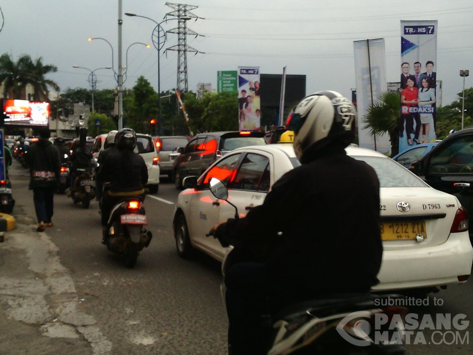 lalu lintas dari senayan trade center yang akan menuju bundaran senayan dan pakubuwono tampak padat kendaraan