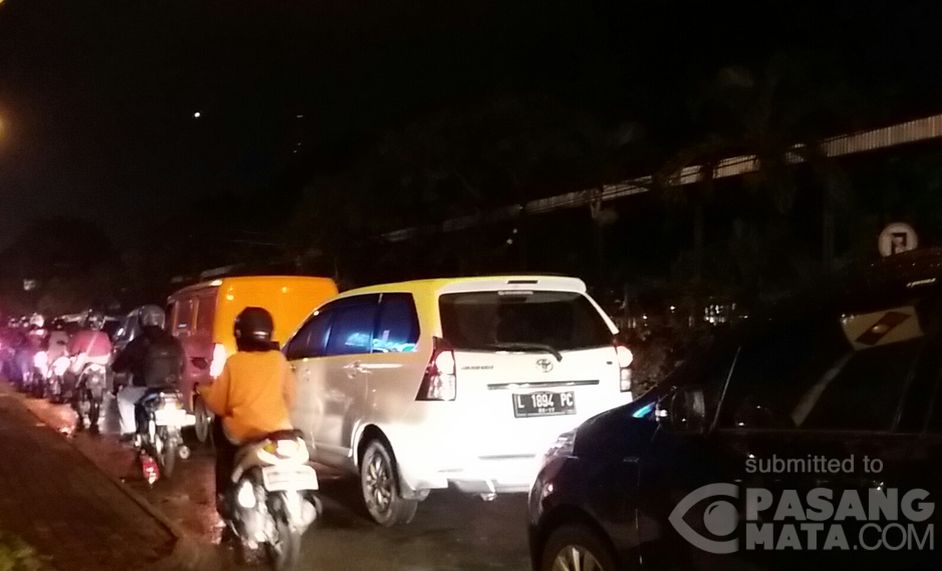 Frontage road A. Yani Surabaya arah Jemursari terpantau padat merayap malam ini