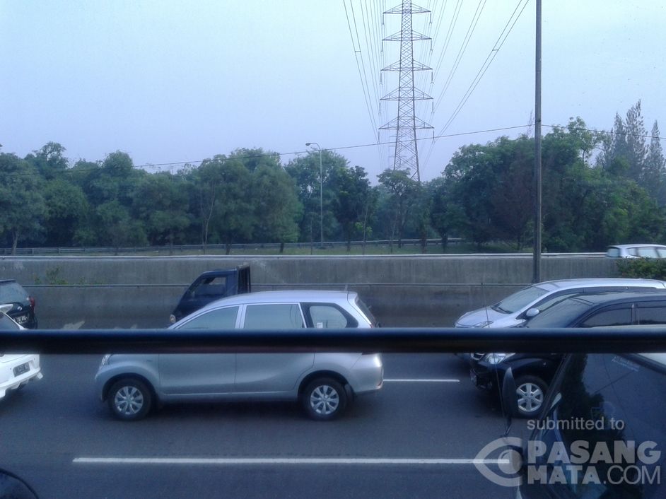 Lalin di Tol Cikampek KM 9 Arah Jakarta Tampak Macet