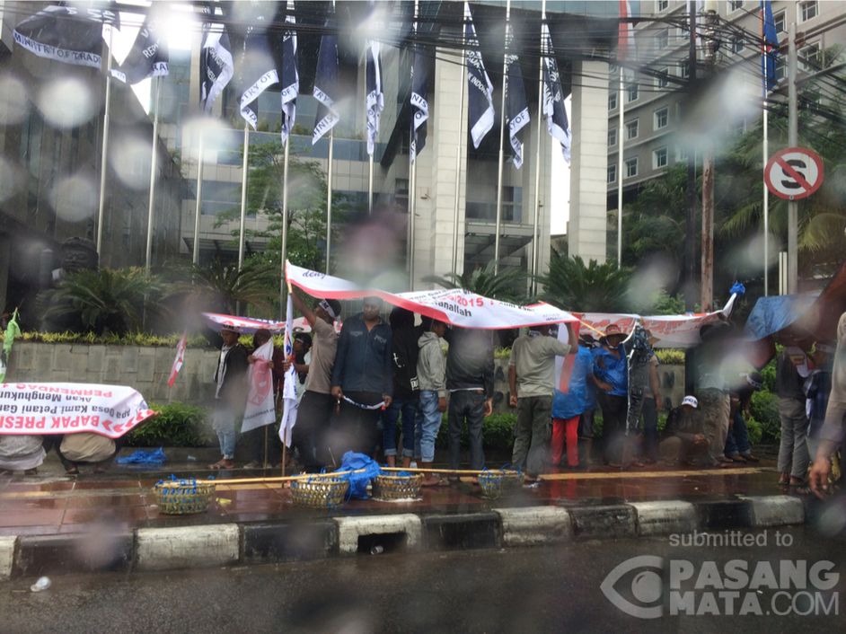 Petani Garam Diguyur Hujan Saat Demo di Gedung Kemendag