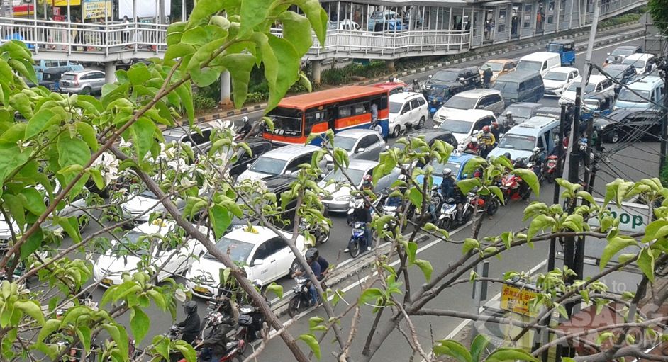 Tampak kepadatan arus lalin dari Matraman menuju Salemba, foto diambil dari flyover Matraman 13.29 WIB