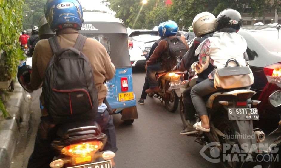 Lalin di Jl Menteng Raya arah Tugu Tani padat merayap pukul 17.20 WIB