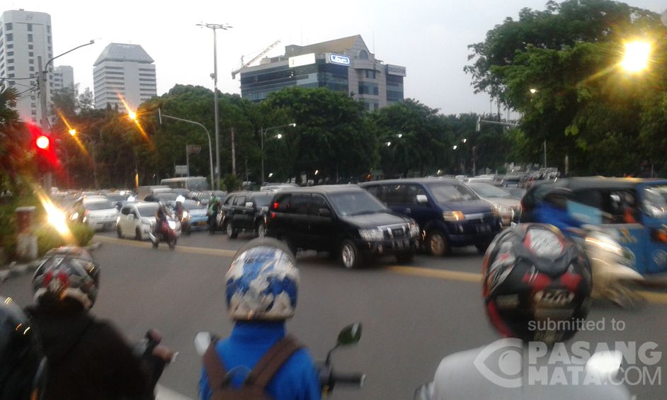 Arus lalin dari Kebon Sirih menuju Kwitang padat merayap pukul 17.28 WIB