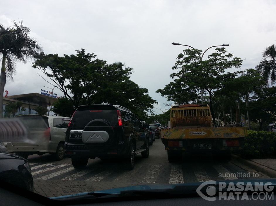 Kamis, 25 Februari 2016. Lalu lintas di depan Marketing Office Pantai Indah Kapuk padat merayap.
