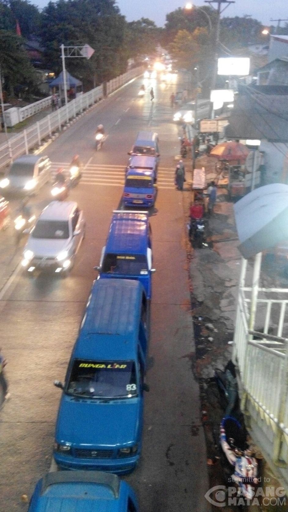 18.20 WIB Waduh. Angkot ini ngetem pada sebagian badan jalan di bawah JPO Lenteng Agung.