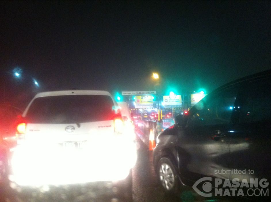 Akses masuk GT Halim Utama padat saling serobot imbas antrean di loket, sedangkan GTO lancar, cuaca hujan