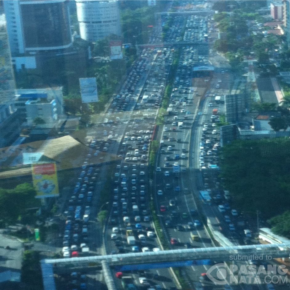 Kuningan - Semanggi Macet Parah. Inilah penampakan arus Lalu lintas antara Perempatan Kuningan ke arah Semanggi, pada jalur lambat tampak nyaris tak bergerak, sedang pada jalur Tol terpantau sangat padat merayap, sedang arus Tol sebaliknya atau arah Cawang tampak mengimbangi kepadatannya. Hanya pas jalur non Tol arah Kuningan yang tampak masih mengalir lancar.
