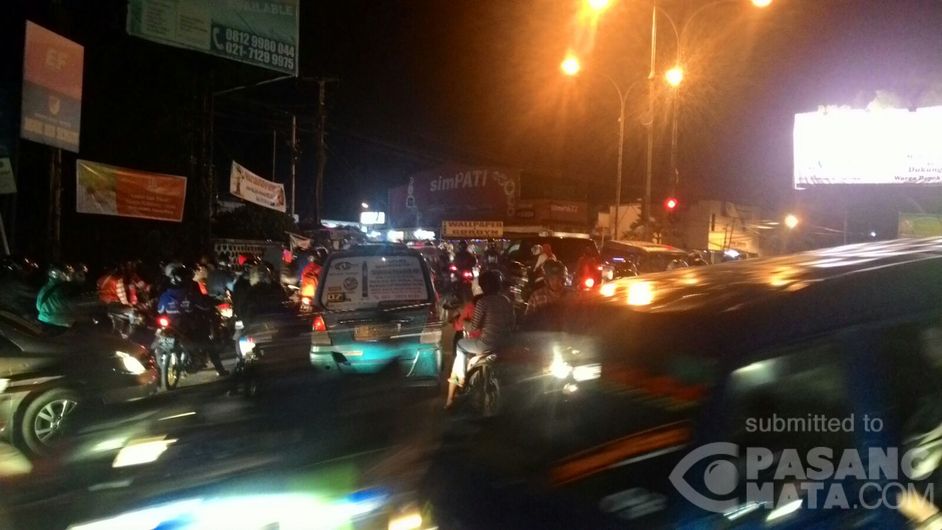Pertigaan Jl Cagar Alam (Sandra) arah Cipayung Pancoran Mas Depok padat, Pk 21.00 jumat 26-2-2016