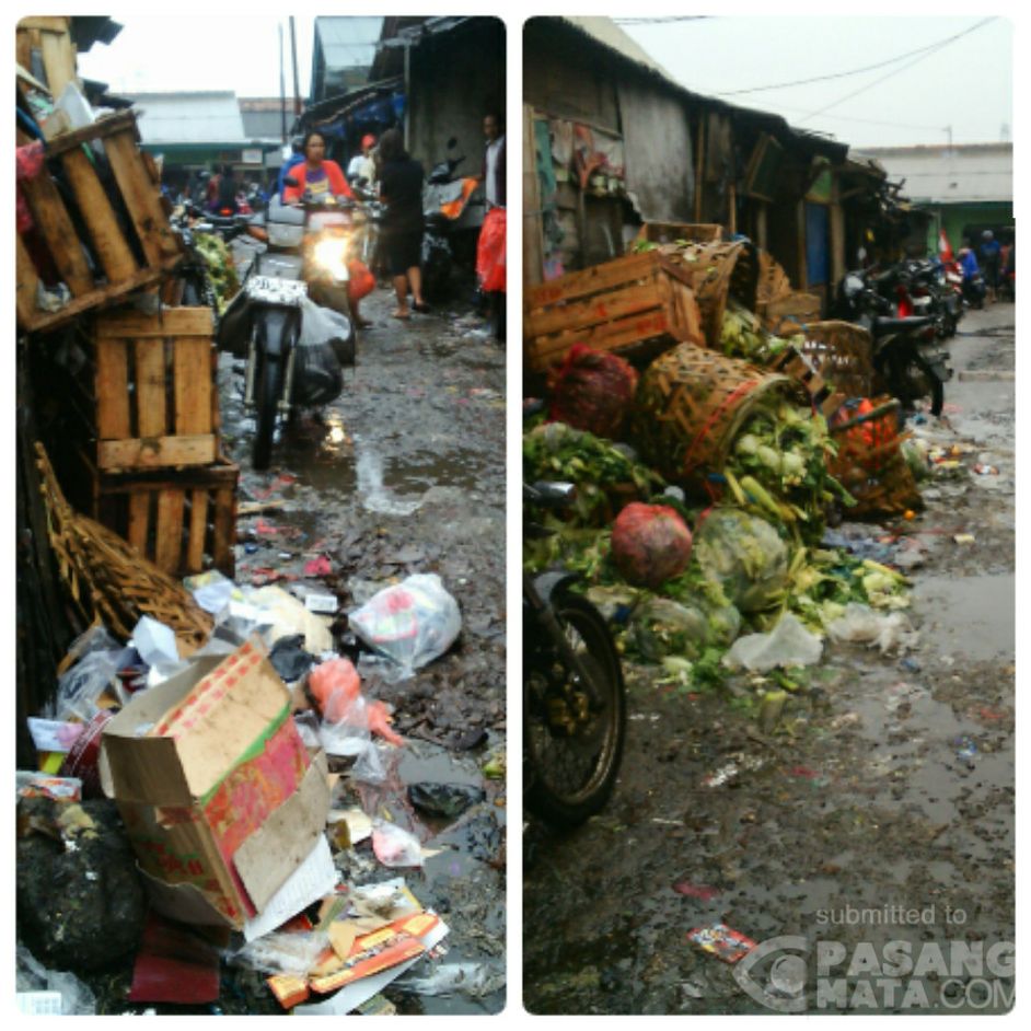 Ini kondisi Pasar Jombang yang becek dan penuh dengan sampah.